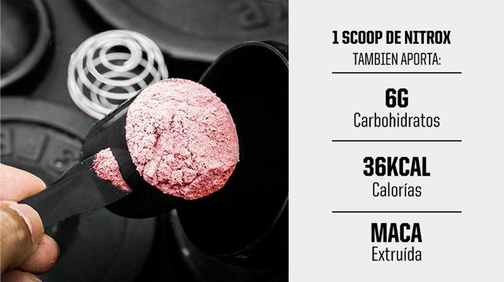 - Se recomienda tomar 1 scoop de Nitrox Pre-workout 20 min. antes del entrenamiento.